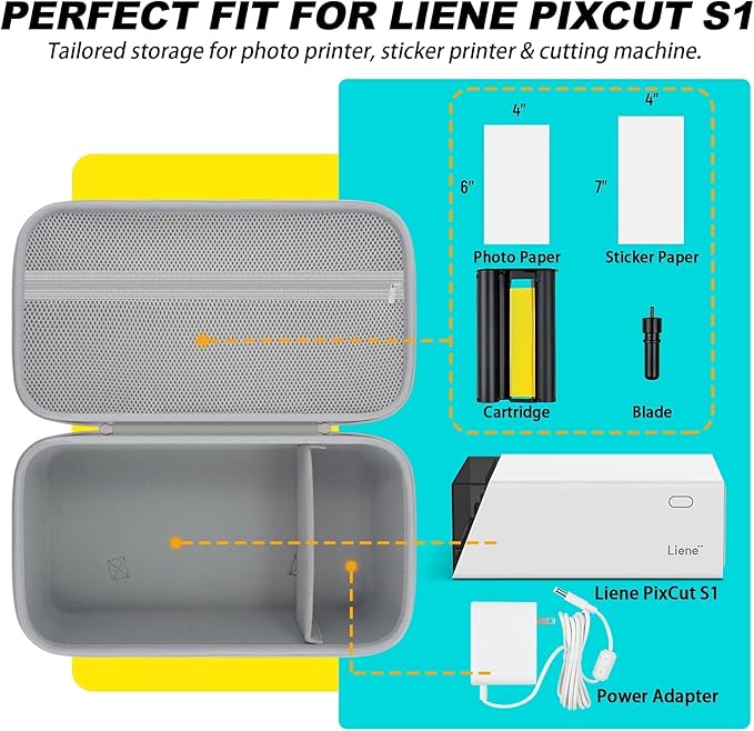 - Lightweight & Travel-Ready – Case Only (Liene photo printer PixCut S1 not Included): This Liene PixCut S1 color sticker printer storage case is slim and travel-ready, making it ideal for the Liene PixCut S1 sticker printer and all liene pixcut s1 sticker paper accessories. Whether you’re crafting at home or heading to a workshop, this case fits your Liene PixCut S1 with ease. Please note: this listing is for the case only. The Liene PixCut S1 sticker printer machine and PixCut S1 decal maker accessories are not included.