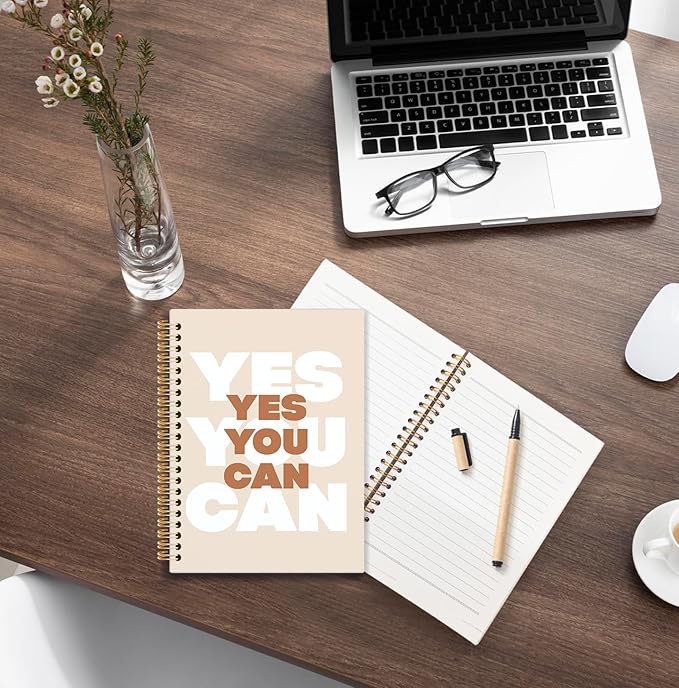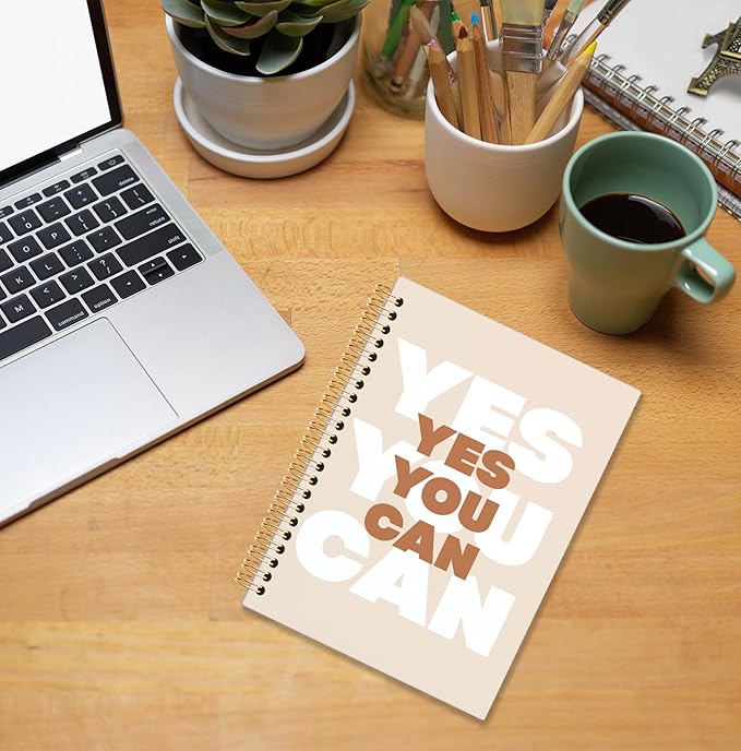 KRHFG Brown Inspirational Spiral Notebook, Motivational Journal, Positive Affirmation Journals for Writing, Yes You Can Girly Preppy Notebooks for Note Taking, 5.5x8.3 Inch
