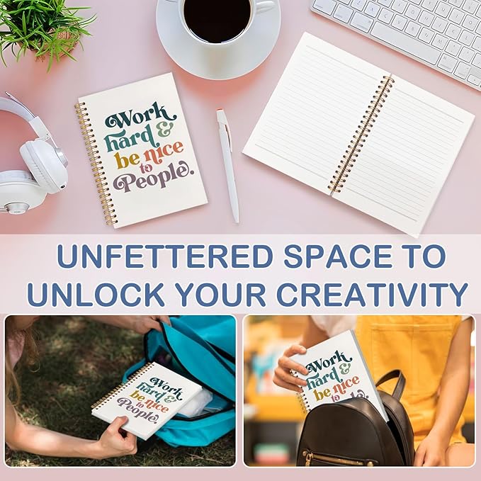 SNNDER Work Hard and Be Nice To People Motivational Journal Notebook, Inspirational Affirmation Journal for Women, Encouragement Kindness Gifts Hardcover Spiral Notebooks 5.5x8.3 Inch