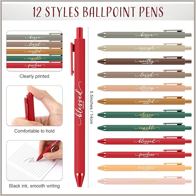 - Inspirational Gifts of Faith: church notebook and pen gift set printed with different bible verses and encouraging words, such as Brave, Worthy, Created, Loved, etc.; These warm and inspiring words will help motivate the receiver to stay positive and encourage people through difficult times