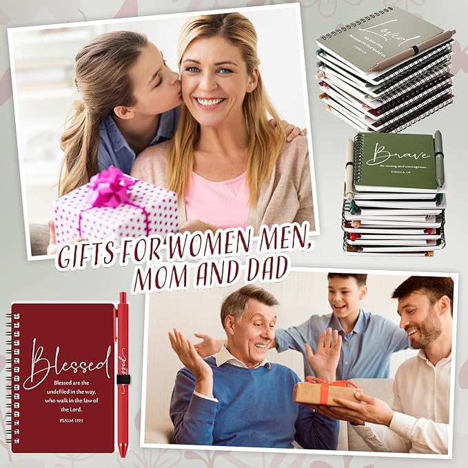 - Christian Inspirational Gifts Bulk: you will receive 24 inspirational Bible spiral notebooks and 24 bible black ink pens, the notebooks and pens have 12 styles each, 2 for each style; Rich colors, sufficient quantity, and various styles can meet your different writing requirements and matching needs, you can also share with others
