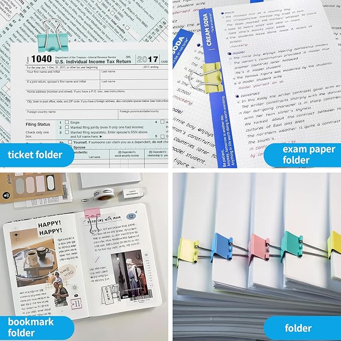 - Multi-Function: Mini binder clips are suitable for the office, home, and organization of contracts. Binder paper clips can also be used for office supplies, DIY projects, handicrafts, school supplies, temporary bookmarks, and food clips
