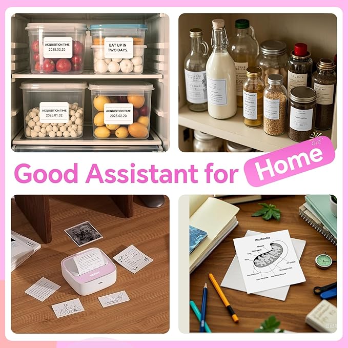 - 💗Inkless Technology - No Cartridge Hassle! This printer uses thermal stiker paper for instant,no messy refills and no drying ink. Perfect for hassle-free printing on the go