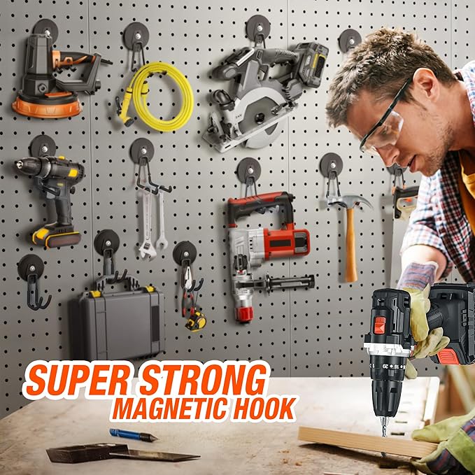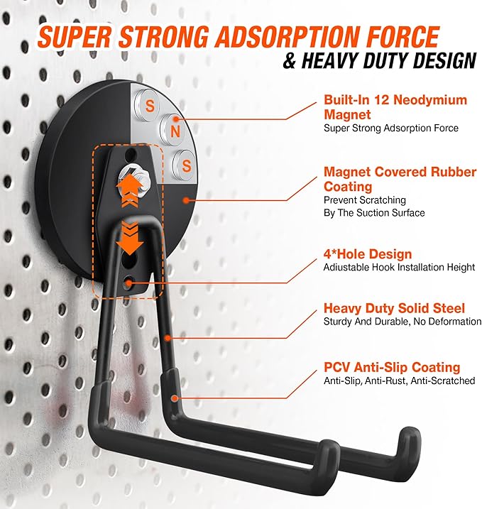 - 🧲[4PCS Magnetic Hooks For Hanging] Large strong magnetic hook present an efficient solution for optimizing vertical storage space within your garage organization system. These multifunctional extra magnet storage hooks are suitable for both indoor and outdoor settings, including garages, gardens, kitchen, warehouse, cruise cabin, utility rooms and indoor/outdoor