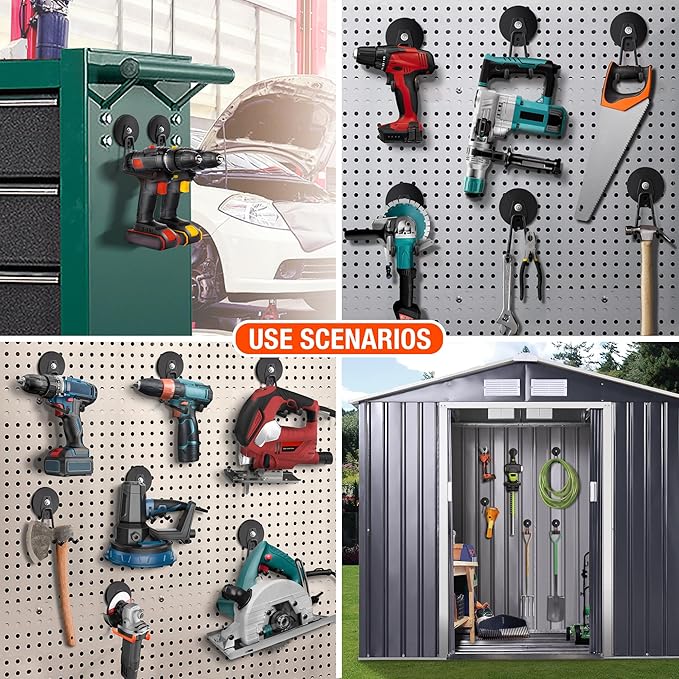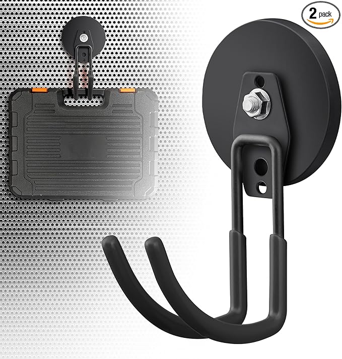 - 🧲[2PCS Magnetic Hooks For Hanging] Large strong magnetic hook present an efficient solution for optimizing vertical storage space within your garage organization system. These multifunctional extra magnet storage hooks are suitable for both indoor and outdoor settings, including garages, gardens, kitchen, warehouse, cruise cabin, utility rooms and indoor/outdoor