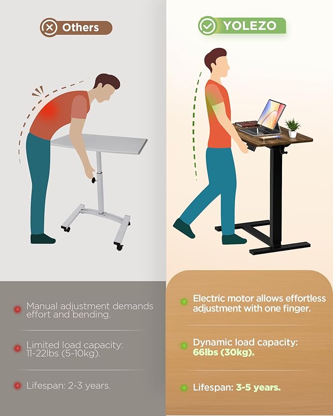 - 【Quick & Easy Setup】Assemble your YOLEZO portable desk in just 10-20 minutes. The control panel installs on the left or right side to match your routine. Works great as an overbed table, home office desk, or height adjustable side table. Please do not hesitate to contact us with any questions during assembly and use (Assembly tools and detailed instructions are included in the package)