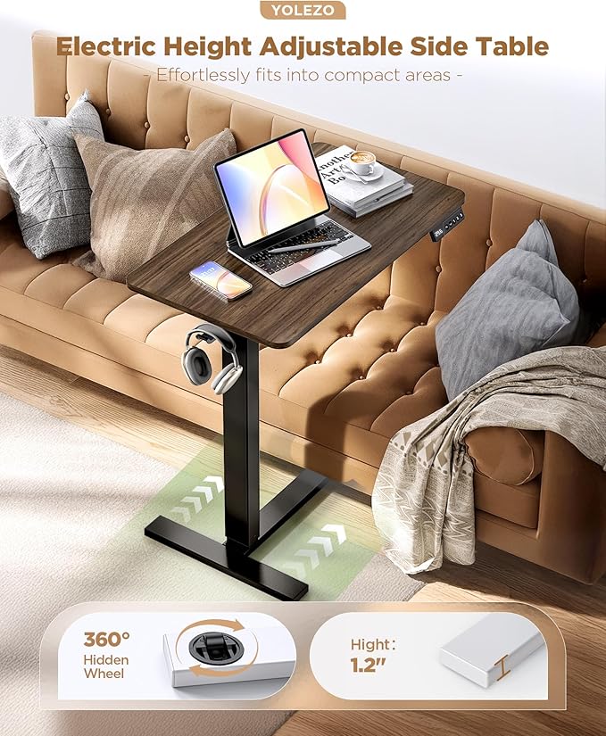 - 【Hidden Wheels & Durable Steel Frame】YOLEZO desk is built with sturdy steel legs 33% thicker than others, supporting up to 66 lbs. The 360° hidden wheels roll smoothly under sofas or beds. Pre-installed nuts make assembly cleaner and stronger — no messy wood chips or cracks.