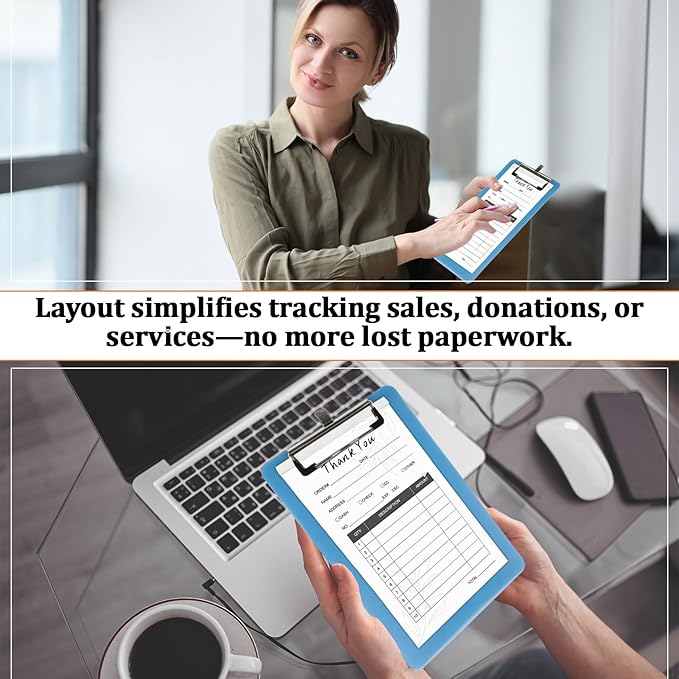 - Compact & Durable for Daily Use: Measuring 5.5 x 3.3inches /14 x 8.5 cm, these business receipt books fit in bags, drawers, or the included clipboard for on-the-go use. The thick paper resists wear, while the plastic board stabilizes writing—whether at markets, shops, or events.