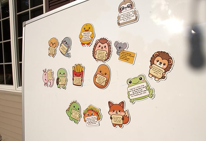 - 🐾 16-Piece Set – Includes 16 cute animal magnets, each with a positive, uplifting message to boost your mood.