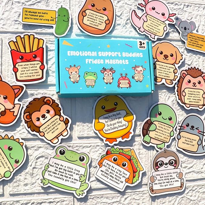 16PCS Emotional Support Animal Fridge Magnets – Uplifting Affirmation Gifts for Kids, Refridgerator Cabinet Door Dishwasher for Home/Office Decoration, Children