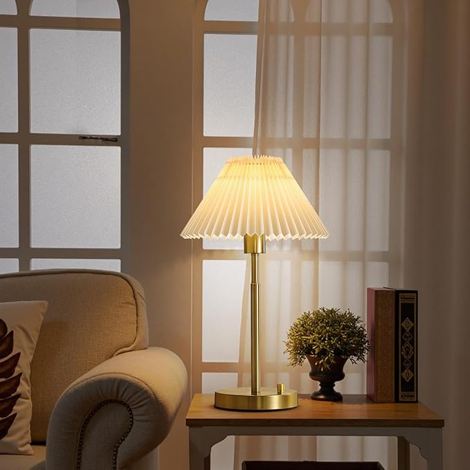 - Modern Vintage Design - Elevate your home decor with this table lamps set of 2. Combining a retro-inspired pleated canvas shade with a brass gold anti-rust iron material, this desk lamps adds a touch of elegant, minimalist charm to any room. It’s the perfect accessory for your bedroom, living room, home office, dorm, nursery, or guest room. It also makes a thoughtful and practical gift for housewarming, birthdays, and holidays