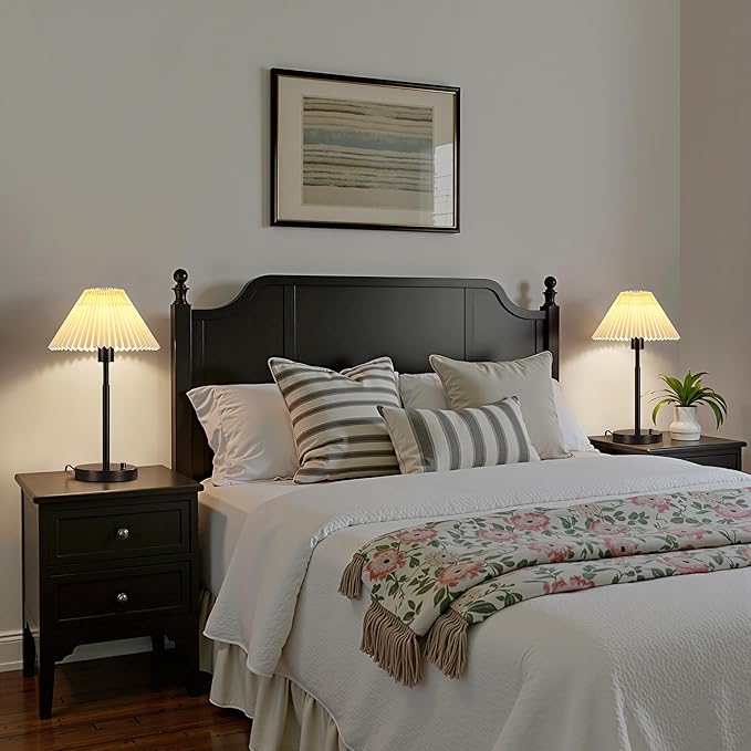 - Modern Vintage Design - Elevate your home decor with this table lamps set of 2. Combining a retro-inspired pleated canvas shade with a matte black anti-rust iron material, this desk lamps adds a touch of elegant, minimalist charm to any room. It’s the perfect accessory for your bedroom, living room, home office, dorm, nursery, or guest room. It also makes a thoughtful and practical gift for housewarming, birthdays, and holidays
