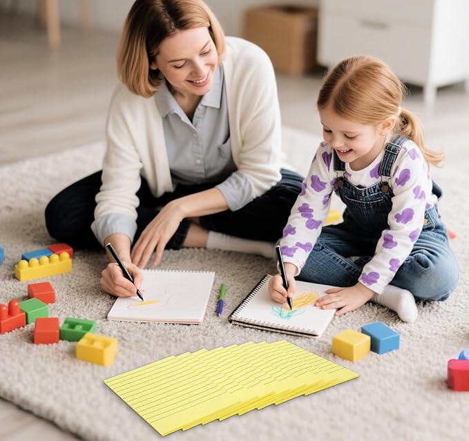 - Eye-Friendly Yellow with Blue Lines:Designed with a light yellow background and blue lines for better visibility and easier organization. The color combination is gentle on the eyes and helps keep your writing aligned and neat