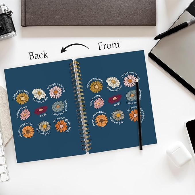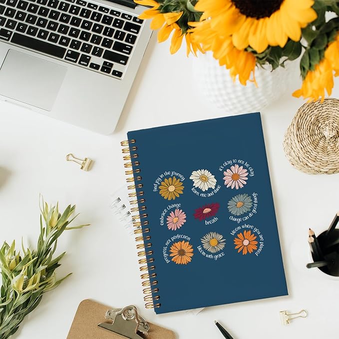 Yetmadi Inspirational Flower Notebook, Navy Blue Positive Affirmations Journals for Women, Motivational Floral Mnetal Health Notebooks for Women, Self Love Gifts, 5.5x8.3 Inch