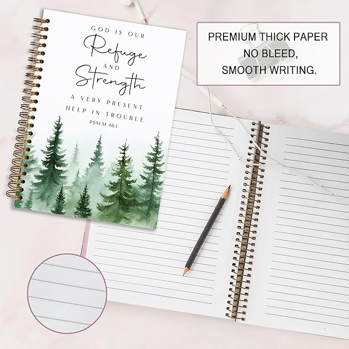 - 2.Bible Journaling Hardcover Spiral Notebook The notebook has a double spiral design, the sturdy spiral binding allows the notebook to lay flat, making it easy to write on both sides of the page. made of thick paper, prevents ink from leaking, safe, easy to write