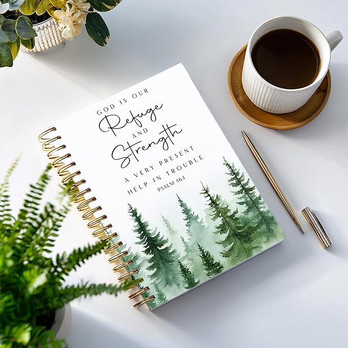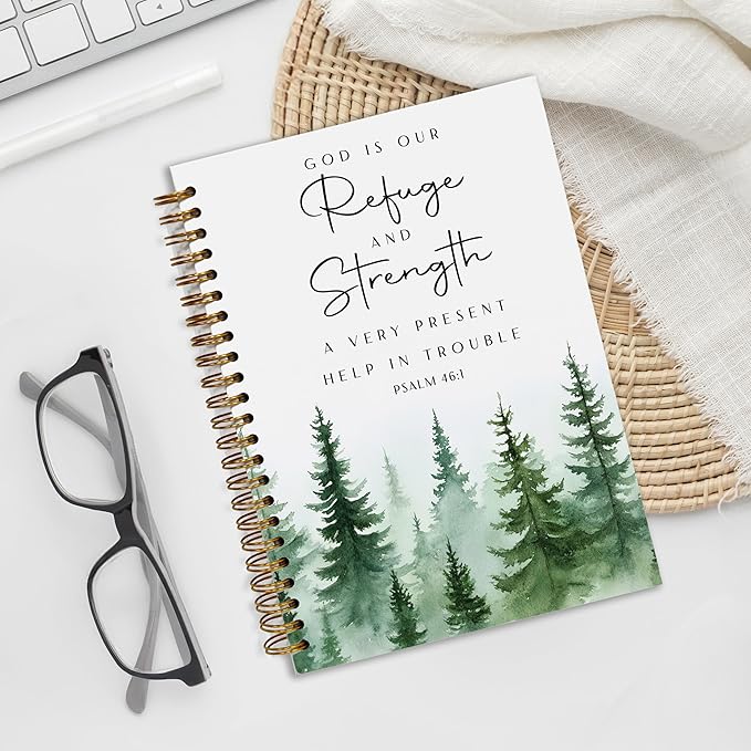 YOU FOUND ME Bible Journal, A5 Spiral Christian Bible Journal with Pink Cherry Notebook, God is Our Refuge and Strength, Bible Verse Gift for Women Birthday Christmas, Sunday School, Office Supplies