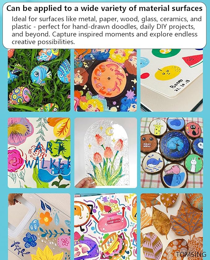 - 【Water-Based, Odorless & Non-Toxic Ink】 These markers feature vivid, highly saturated colors that provide excellent coverage and dry quickly. The ink layers smoothly and is waterproof, lightfast, and fade-resistant, preventing bleed-through on paper. Made with certified high-quality ink, these paint pens are odorless, non-toxic, and safe for use. (Usage Note: Close caps tightly and store pens horizontally.)