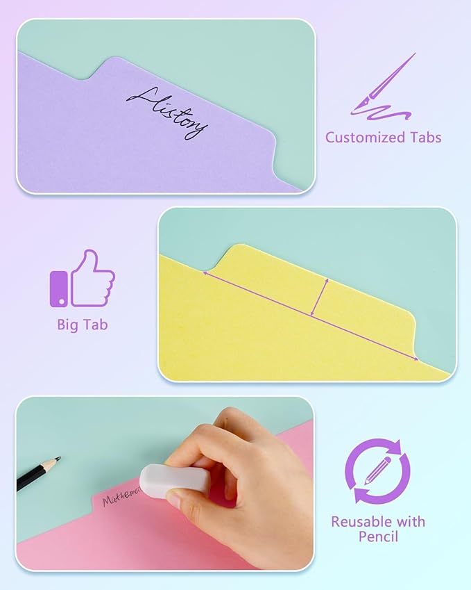 - Versatile Usage: Perfect for both students and professionals, our dividers are must-haves for organizing your files. Keep everything in perfect order and boost your productivity in studies or work with these handy dividers