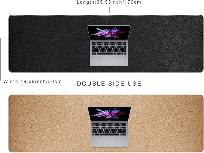 - DOUBLE SIDED DESIGN: This desk mat is made of leather and cork, double sided design, smooth surface, clear texture on the back, comfortable for mouse movement, non-slip design ensures that the pad stays firmly in place, allowing you to focus on your work without distraction. This full desk mat is suitable for men and women in office, home, gaming, drawing and writing.