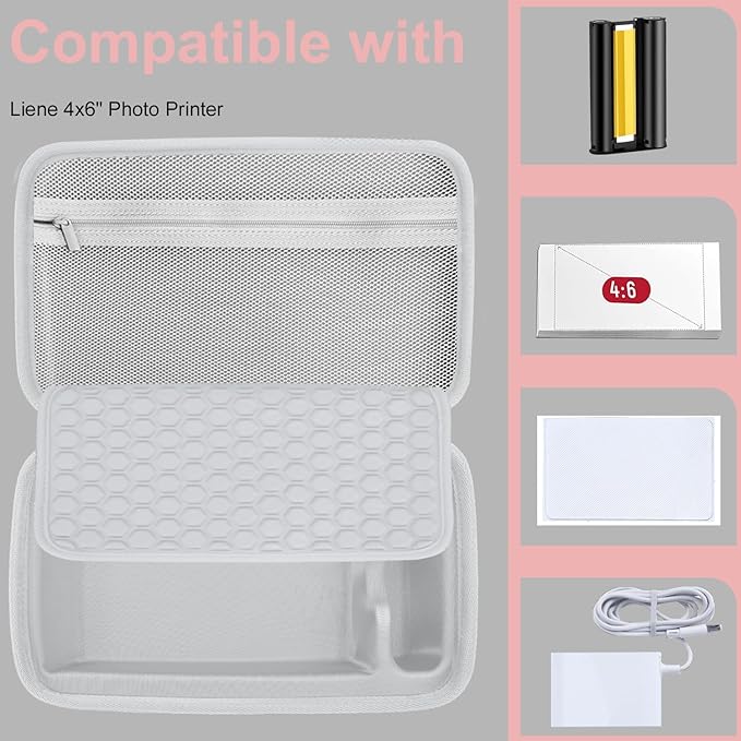 - Careful design: Made from high-quality materials.The storage case is made of high quality EVA material, this Waterproof Dustproof Printer Case shields your Liene 4x6 portable photo printer from splashes, dust, and impacts.