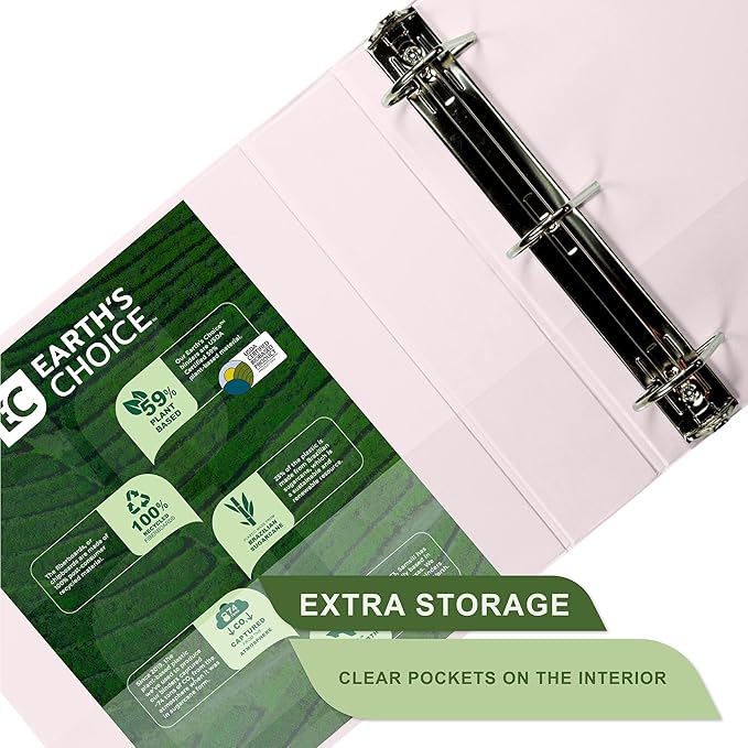 Samsill Plant-Based 2 Inch Durable D-Ring, Made in USA, View Binder, Eco-Friendly, USDA Certified Biobased, Single, Light Pink