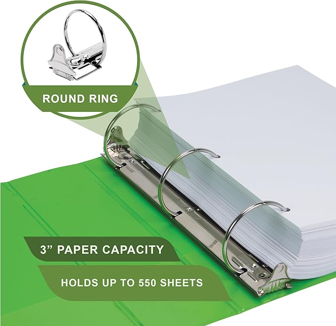 Samsill Plant-Based 3 Inch Durable Round Ring, Made in USA, View Binder, Eco-Friendly, USDA Certified Biobased, Single, Bright Green