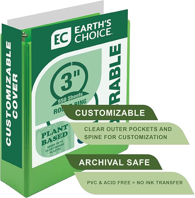 - Sustainable Solution: Our binder is made from plant-based materials, including a polypropylene cover derived from 25% Brazilian sugarcane and 100% recycled fiber boards. Brazilian sugarcane is chosen for its renewable nature and minimal impact on food crops, while actively capturing CO2 from the atmosphere