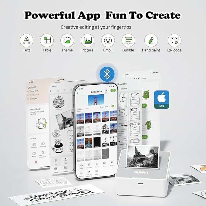- ✅ POWERFUL APP STICKER MAKER: Use the HerePrint app to access templates, SCAN, PRINT DOCS, and more. This print pods mini sticker printer prints text and photos instantly. Designed for black and white output only. (Note: This device is not a camera.)