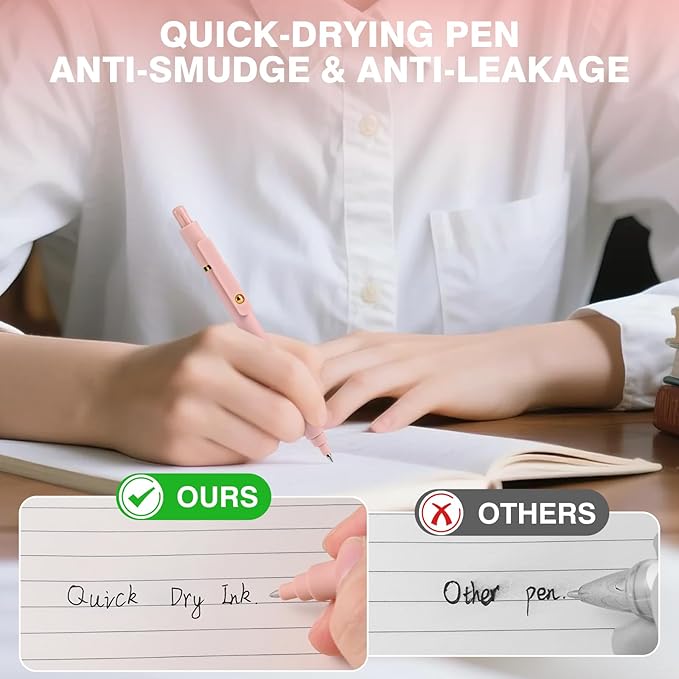 - Quick-Drying Black Ink: Our gel pens feature a quick-drying design that does not skip, does not penetrate paper, and is not easy to fade, preventing smudging, smearing, and bleeding, keeping your paper neat and your fingers clean. Ideal for left-handed writers or rapid notetaking