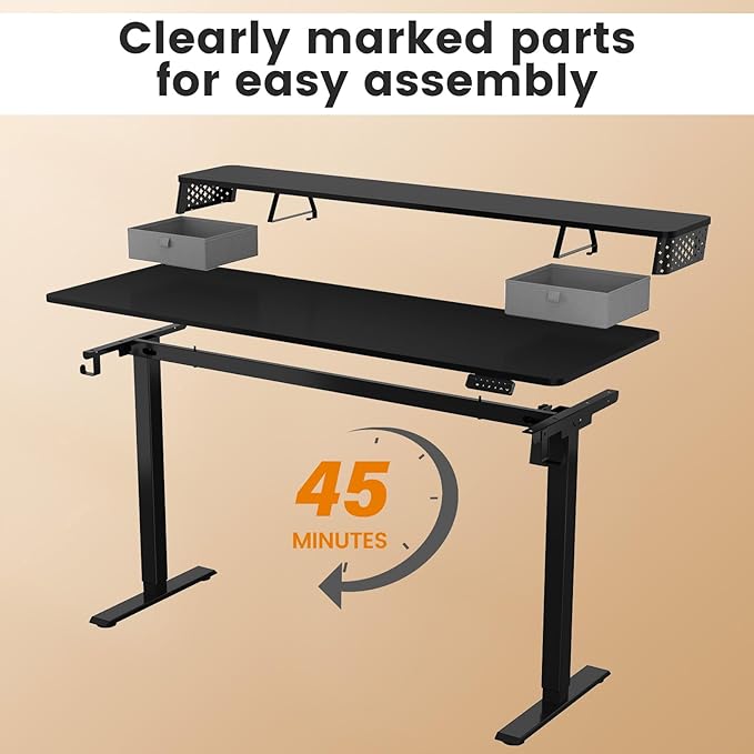 - 【Electric Standing Desk】: This adjustable height standing desk is equipped with a high-efficiency brushless motor, which is more durable than ordinary single motors, and the lifting process is almost silent (<45dB), ensuring that you can concentrate on your work without being disturbed