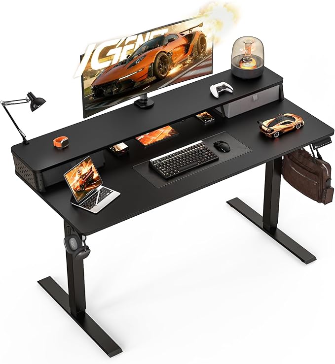 Standing Desk with Drawers and Brushless Motor,Electric Height Adjustable Desk for Walking Pad,Ergonomic Stand Up Desk for Home Office & Gaming,3 Memory Height Preset & Hooks(55" x 24",Black)
