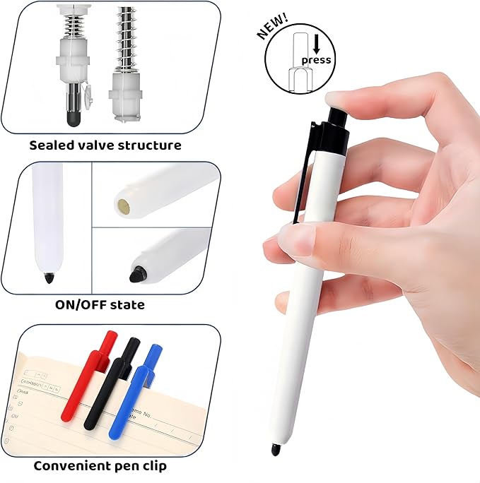 - Patented sealing for durable ink:1.8mm ultra-fine tip + airtight ink-locking design slows ink evaporation, lasting 40% longer than ordinary whiteboard pens. It won't run out of ink for months, making it super worry-free for bulk use in schools and companies.