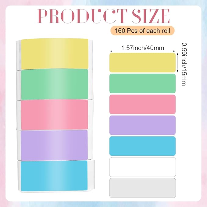 - Compact & Universal Size:Each label measures 0.47 x 1.6 inches (12 x 40 mm), a convenient size that fits most labeling needs without wasting space. The slim design ensures compatibility with most thermal label printers (excluding NELKO, Niimbot models), offering a seamless printing experience. Lightweight yet durable, these tapes are easy to store and handle