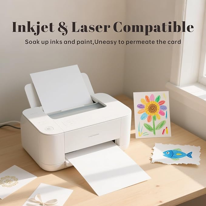 - 3. 【Versatile Printer & Craft Compatibility】 Compatible with inkjet, laser printers, copiers, and cutting machines (Cricut/Silhouette), this cardstock delivers jam-free performance and clean cuts. Ideal for wedding invites, business cards, scrapbooking, and calligraphy.