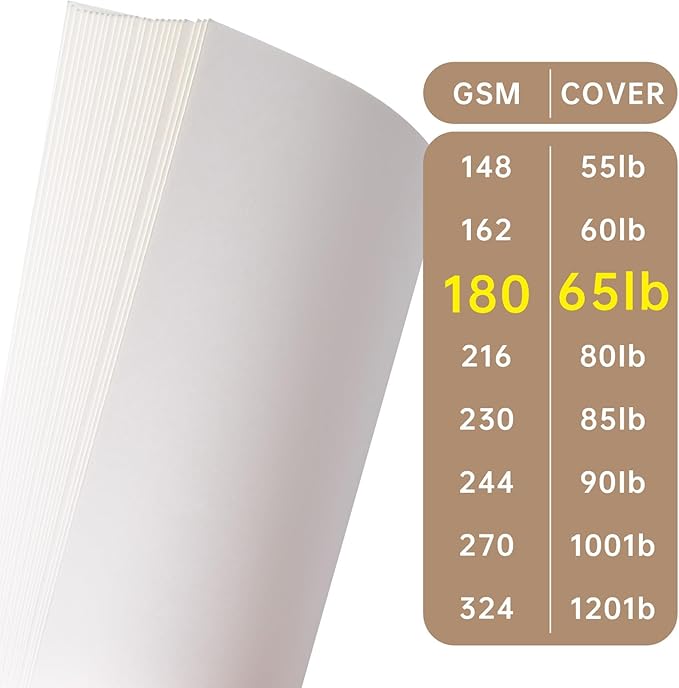 - 1. 【200 Premium Cream White Sheets】 This 200-pack of 8.5" x 11" cover cardstock features an elegant cream white hue, perfect for professional and creative projects. The 180 GSM (65 lb) weight provides durability while remaining printer-friendly for crisp, high-quality prints.