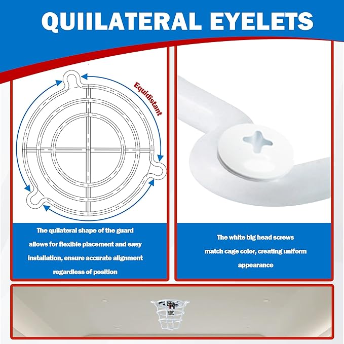 - Provided with three wire-formed eyelets for a solid installation. The three eyelets are in a equilateral triangle. So when you mark the hole location, NO NEED of noting orientation. The holes would line up after you drill. Very easy to install, save your time