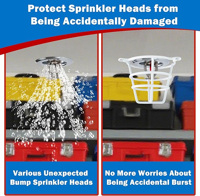 - Strong fire sprinkler head cage for both 1/2" & 3/4'' sprinkler heads. These sturdy white sprinkler cages will provide all the protection you need for your sprinkler heads, while being open enough to allow for installation, removal, or work, and continuous functioning as needed