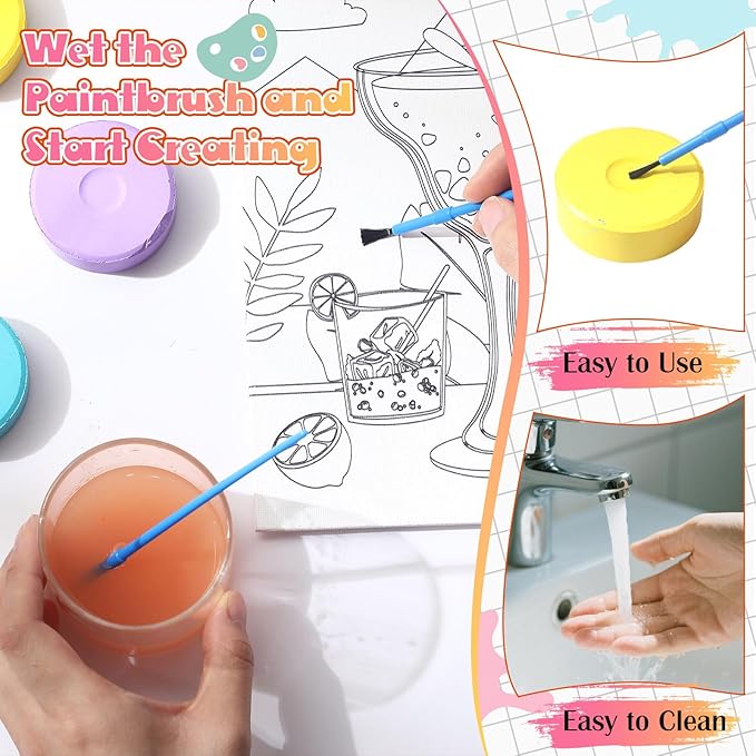 - Easy to Clean: simply moisten your brush to begin; Being water soluble, our long lasting tempera paint cakes can be easily cleaned off brushes and palettes; Give more time to your artwork and less to the cleanup process