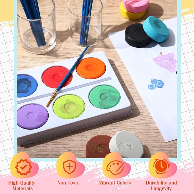 - Reliable Material: with increased quality and longevity, our washable tempera cakes are made from safe materials which offer a variety of highly pigmented vibrant colors; They don't easily dry out, providing long lasting applied