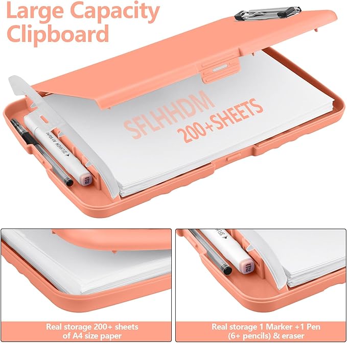 - High Capacity: Clipboard design with storage space, can securely hold up more than 200 letter-sized documents, it has twice the capacity of other clipboards. Have a pen holder at the bottom of the clipboard case, can holds up to 6 pencils