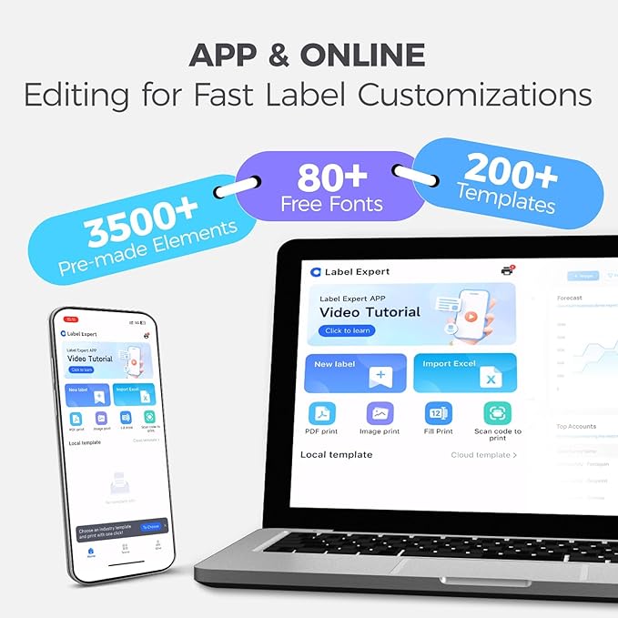 - Dual Connectivity: This bluetooth label printer combines a stylish design with powerful functionality. Connect easily to the "Label Expert" app via bluetooth for seamless label printing; it also supports PC users via USB connection—simply download and install the driver from the official website to get started