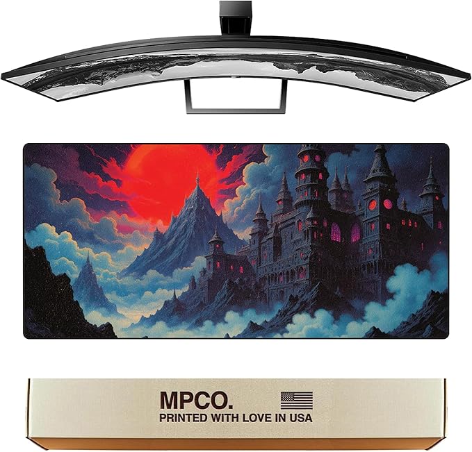 MPCO. Dark Fantasy Large Gaming Desk Pad - 36" x 17" Aeroglyde Fabric The Red Luna Desk Mats - Non-slip, Washable, Smooth Glide for Precision Gaming & Work