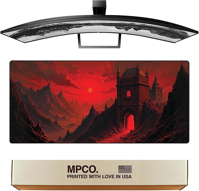 MPCO. Dark Fantasy Large Gaming Desk Pad - 36" x 17" Aeroglyde Fabric The Scarlet Passage Desk Mats - Non-slip, Washable, Smooth Glide for Precision Gaming & Work