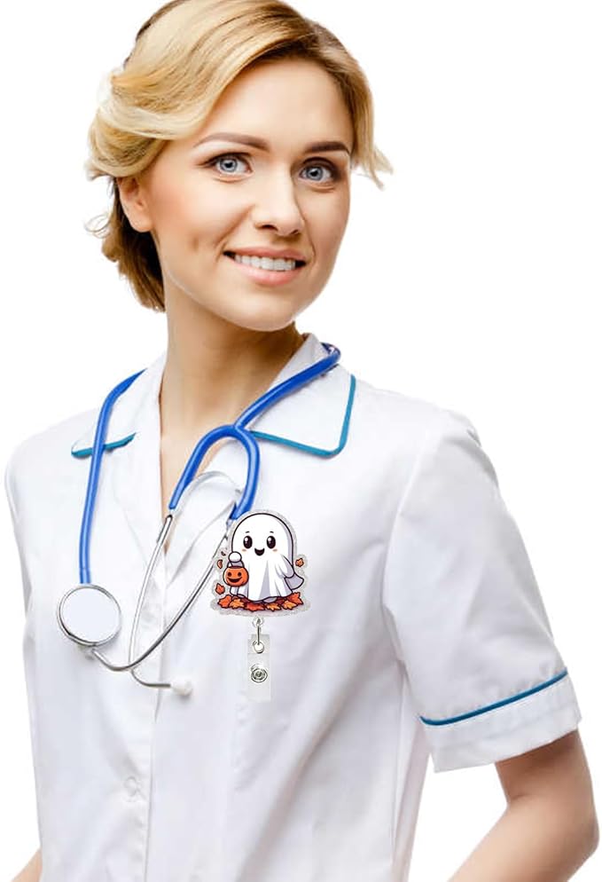 - Cute Halloween Design: The Halloween badge reel features an adorable ghost carrying basket design, making it a perfect accessory for the festive season, enhancing your work attire with a touch of Halloween spirit