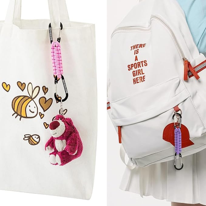BRAVESHINE Paracord Keychain Carabiner Clip, D Ring Lanyard Hanger Stroller Hook for Water Bottle, Key, Backpacks, Men, Women