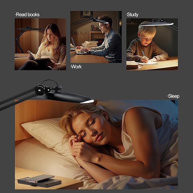 - Flexible Arm & Stable Clamp: Built with a 39-inch adjustable metal swing arm and a 360° rotating clamp, this desk lamp with clamp can be easily clipped onto desks or workbenches up to 2.5 inches thick. The sturdy clamp offers firm stability without complex installation.