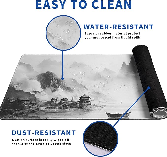 - ♥[Easy To Clean]:This large Landscape pad for desk, Spill-proof coating protects your desktop from spilled water, Drinks, Ink and the other liquid spilled liquid or other accidents.Easy to clean, Just wipe with a wet cloth or paper, Does not fade and can be washed and foldable without leaving creases, Easy to carry.