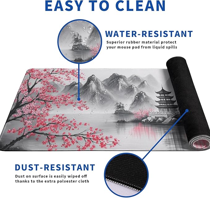 - ♥[Easy To Clean]:This large Retro Cherry Blossom mouse pad for desk, Spill-proof coating protects your desktop from spilled water, Drinks, Ink and the other liquid spilled liquid or other accidents. Easy to clean, Just wipe with a wet cloth or paper, Does not fade and can be washed and foldable without leaving creases, Easy to carry.