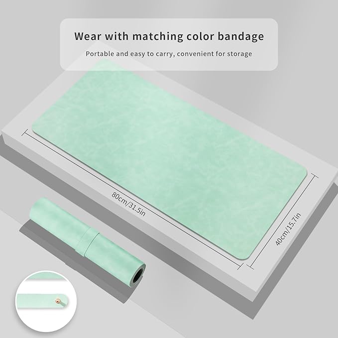 Crazy Horse Leather Desk Mat Large Mouse Pad Laptop Desk Pad Waterproof Non-Slip Table Blotter Desktop Writing Pad for Office and Home (Light Green, 90x43cm)