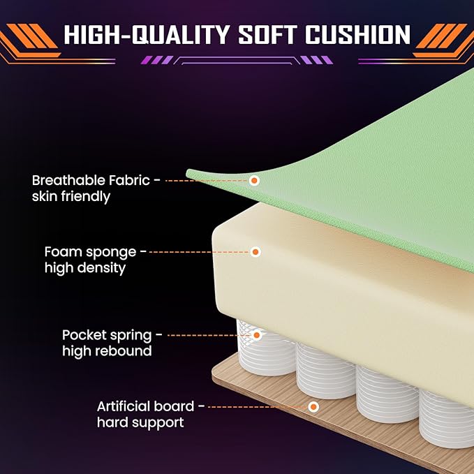 - Individually Pocket Spring - The seat cushion of game chair features pocket springs, a technique commonly used in sofas. Each spring operates independently, conforming to pressure and body weight to deliver resilient support and a luxurious comfort experience comparable to high-end gaming chairs.